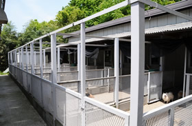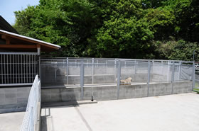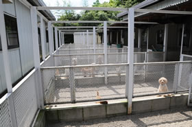 屋内には個室があり、屋外には6箇所に仕切られた、運動場付犬舎があります。