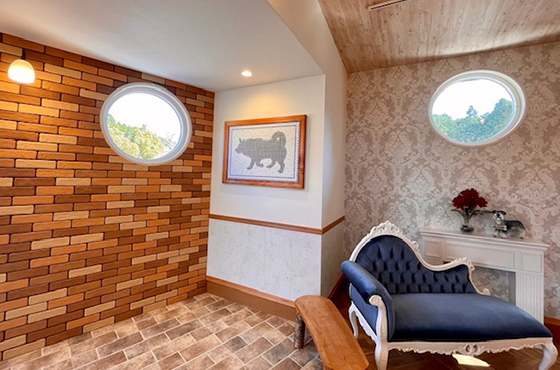 両親犬や子犬たちを、ご覧いただけるよう室内外で応接できるようにしてあります。